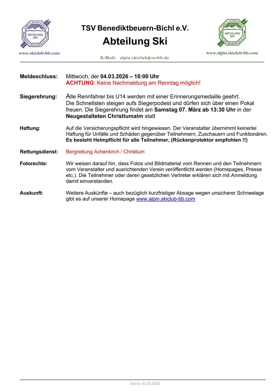 Nähere Infos gibt es beim Sportwart!